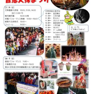 文殊護摩大祈祷、稚児練供養、書道パフォーマンス、各種奉納、大筆書き大会、仁王さま展望台、第64回智恵文殊菩薩献書大会表彰式及び作品展示など各種催し物があります。