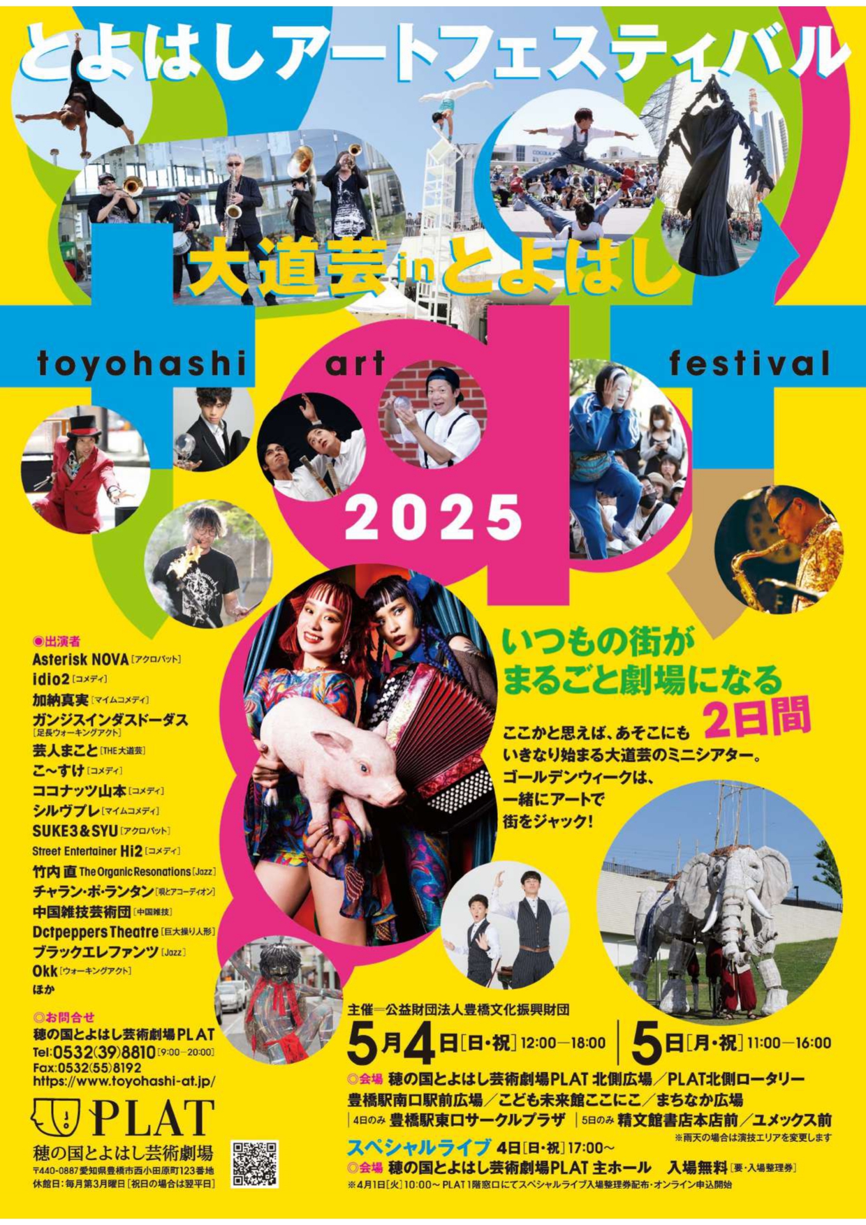 | 場所 | PLAT北側広場/PLAT北側ロータリー/ 豊橋駅南口駅前広場/こども未来館ここにこ/まちなか広場/ [4日のみ]豊橋駅東口サークルプラザ/[5日のみ]精文館書店本店前/ユメックス前 |