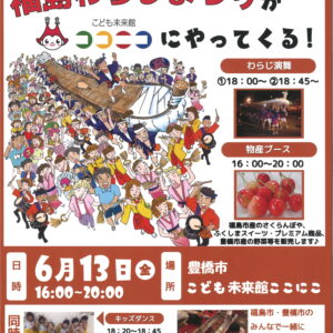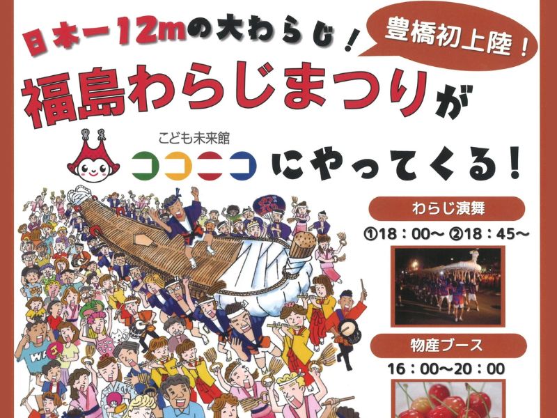 パートナーシティである福島市の皆さんがわらじまつりを披露します。華やかな舞と太鼓隊の演奏とともに、長さ12mの大わらじをかつぐ勇壮な姿をご覧ください。また、豊橋市と福島市の農産物販売のほか、キッズダンス・こども夜市も同時開催します。