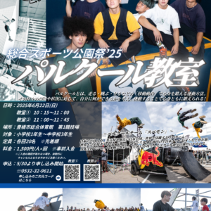 総合スポーツ公園祭はイベントが盛りだくさん!バスケットボール教室・パルクール教室・親子でチャンバラあそびの他にもトレーニングルームにてスペシャルレッスン等が開催されます。
