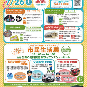 今年は白バイの展示やちびっこ警察の制服着用体験などの「市民生活展」も科学館で開催。(予約不要、13:00〜16:00)