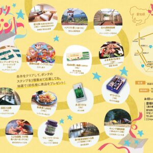 豊根村内の行楽施設20カ所に設置されたポンタのスタンプを3種類集めて素敵なプレゼントを当てよう!