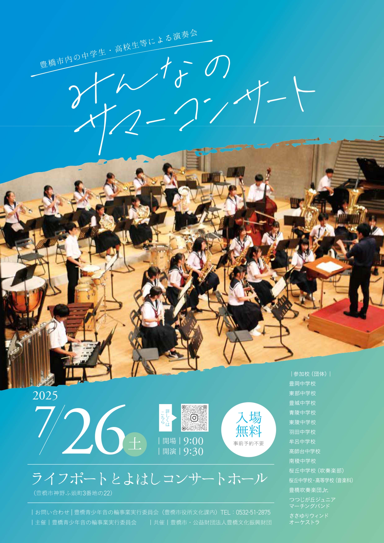 | お問い合わせ | 豊橋青少年音の輪事業実行委員会事務局(豊橋市役所文化課) 電話:0532-51-2875 |