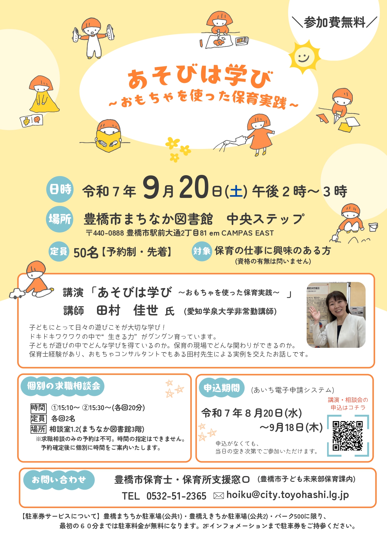 | お問い合わせ | 豊橋市役所保育課 TEL:0532-51-2365 MAIL:hoiku-chousa@city.toyohashi.lg.jp |