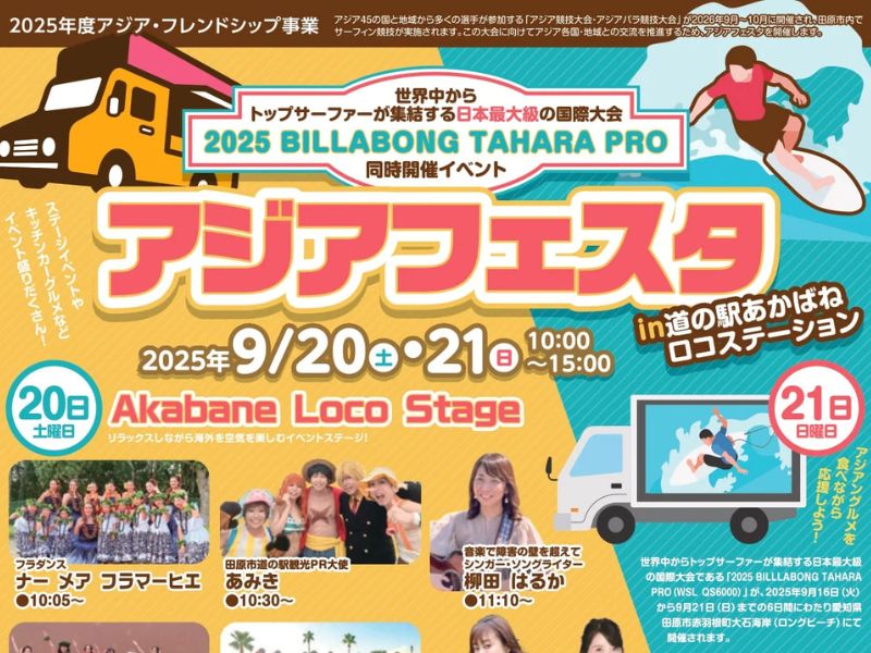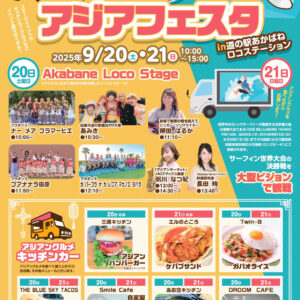 本大会の同時開催イベントとして、『アジアフェスタ in 道の駅あかばねロコステーション』を開催!ステージイベントやキッチンカーグルメなどイベント盛りだくさんの内容となっておりますので、ぜひお越しください。
