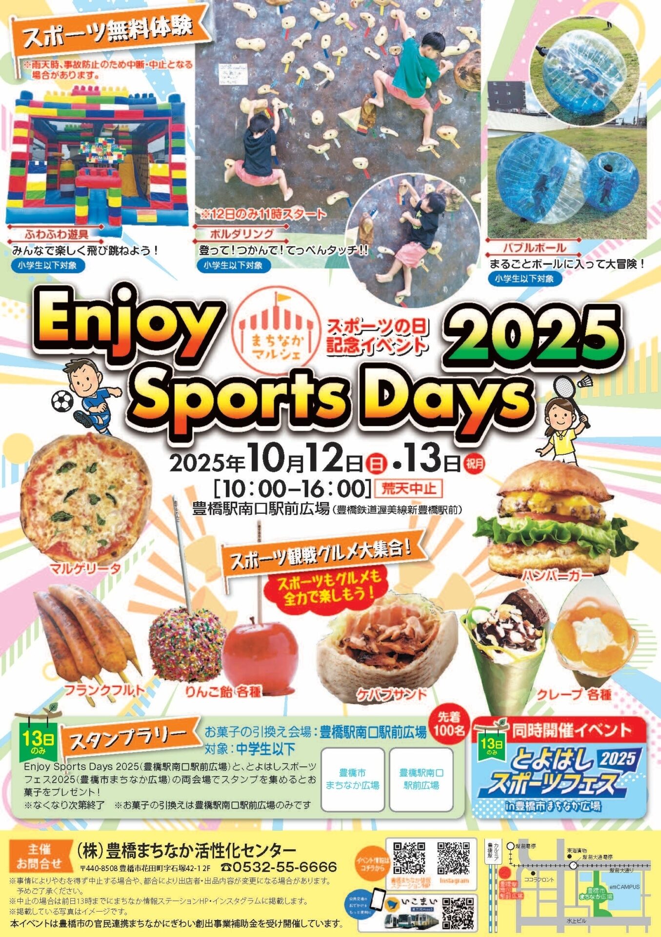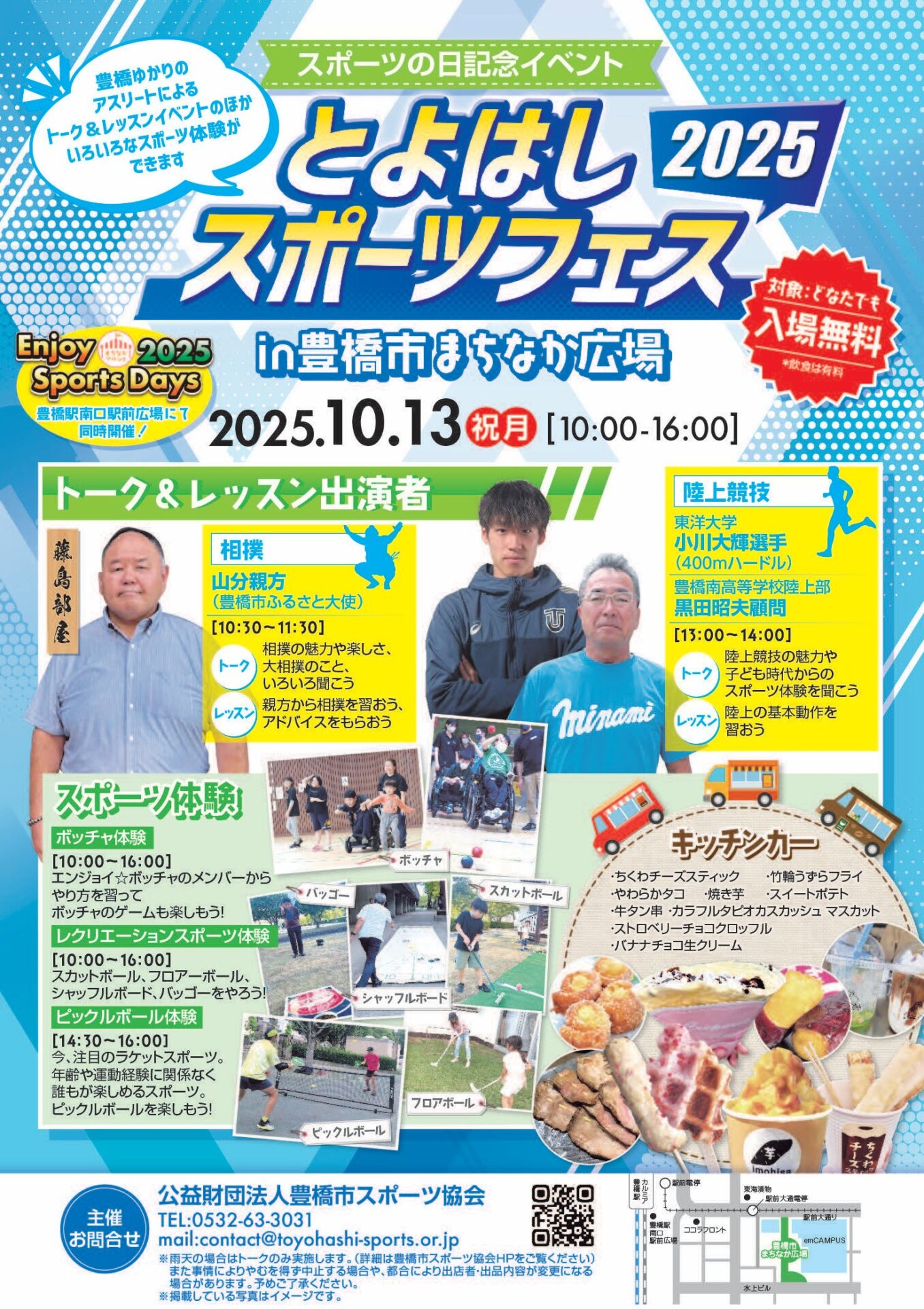 | 日時 | まちなかマルシェ-Enjoy Sports Days- 2025年10月12(日)・13日(月・祝) 10:00~16:00 とよはしスポーツフェス2025 |