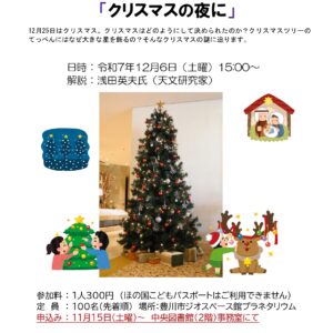 季節の星空探訪「クリスマスの夜に」@ジオスペース館