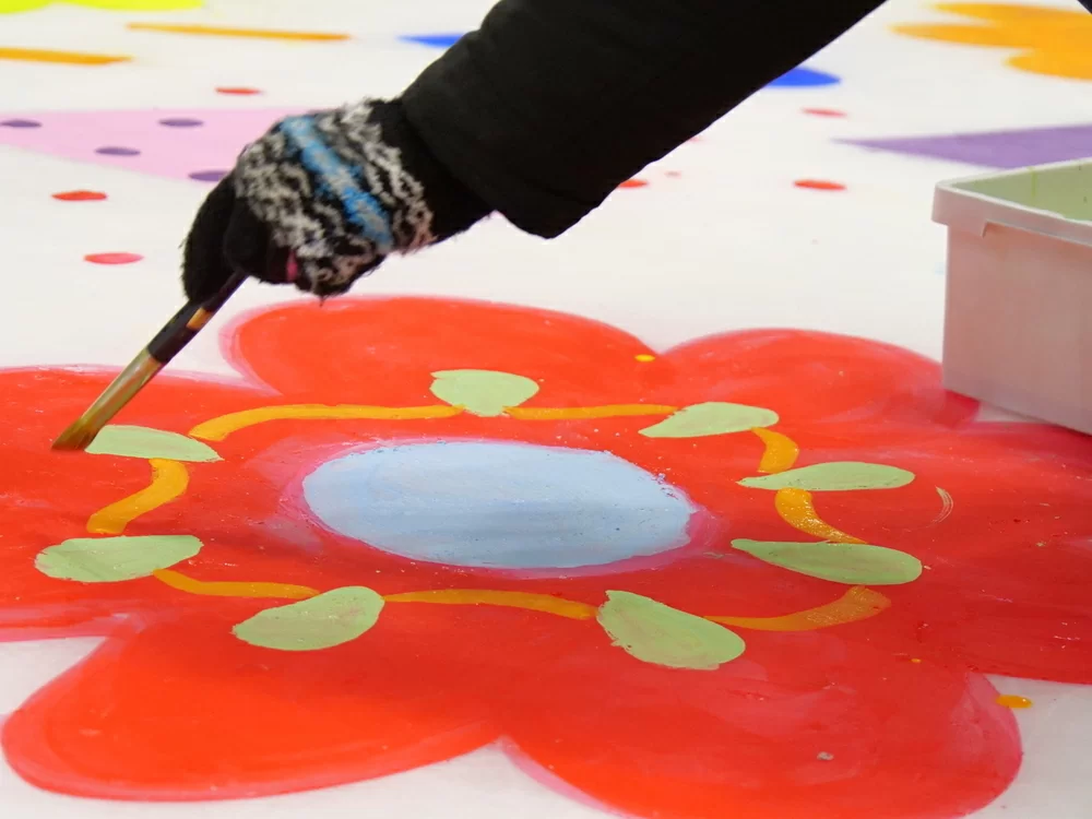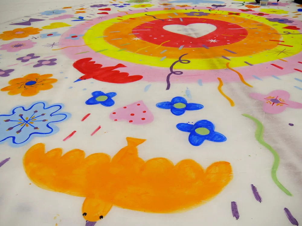 参加者のみんなと一緒に、氷の上でアートを描き広げます!