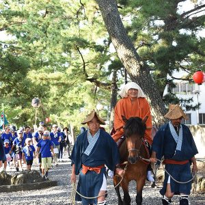 頼朝行列は各町内により、頼朝や乳母、獅子飾鉾などの担い手が決まっています。