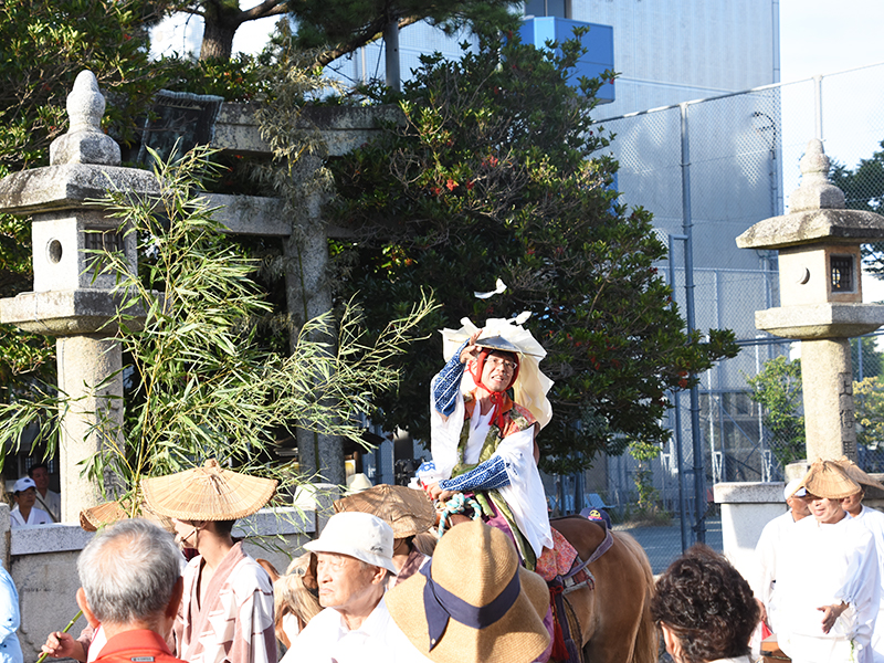 鼻高面は頼朝行列の中にいますが、動き回っているため決まった場所にいることはあまりありません。