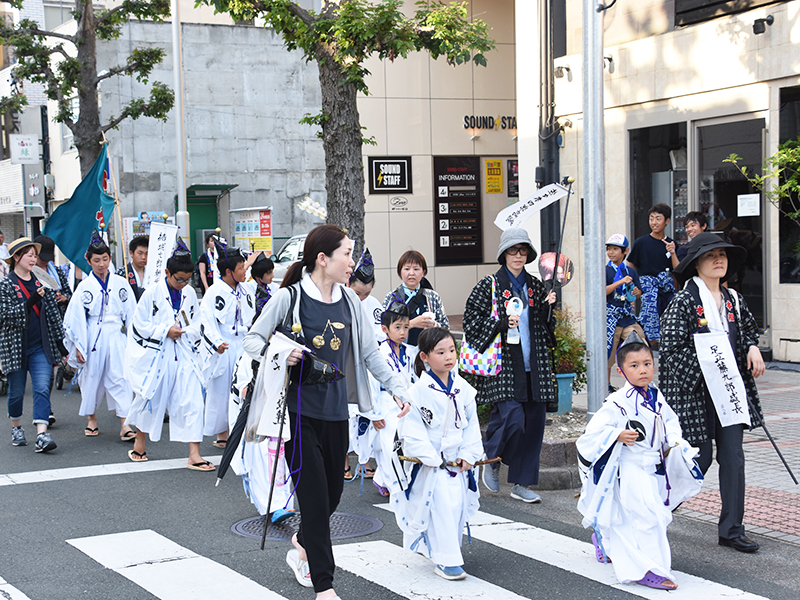 子供笹踊りは、将来笹踊り役として選ばれるよう子供のうちから素養をつける為に始まったとされ、明治29年より祭礼前日の吉田神社社参の儀が始まり、今日まで続いています。