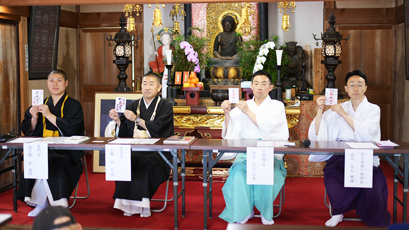 5月21日、豊橋を代表する4つの寺社仏閣(安久美神戸神明社、吉田神社、赤岩寺、普門寺)共同の記者会見が行われました。