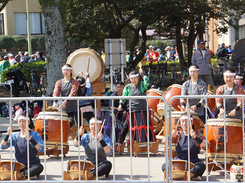 さらには、地元の学生たちの和太鼓の演奏が、さらに選手を熱く後押してくれる。