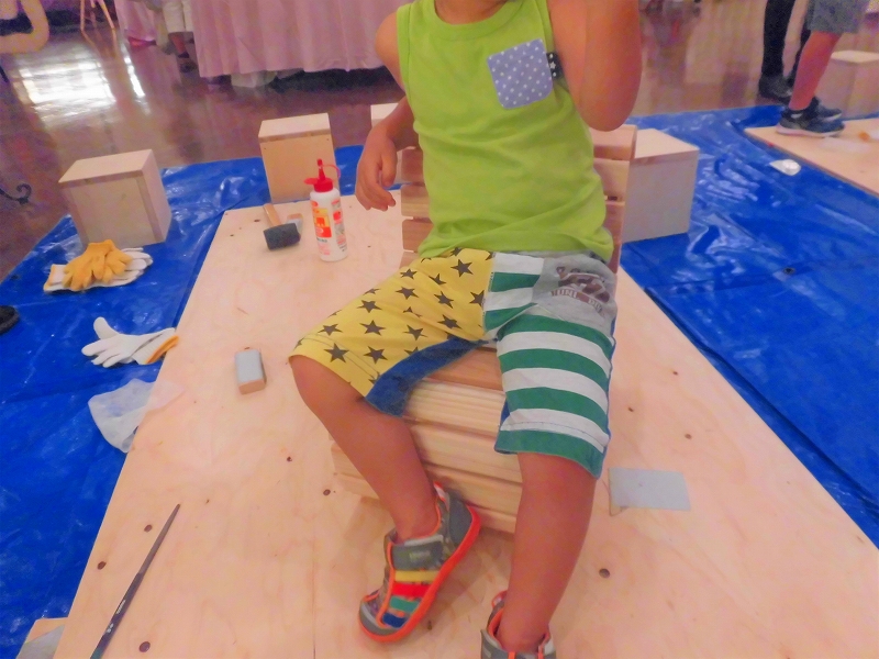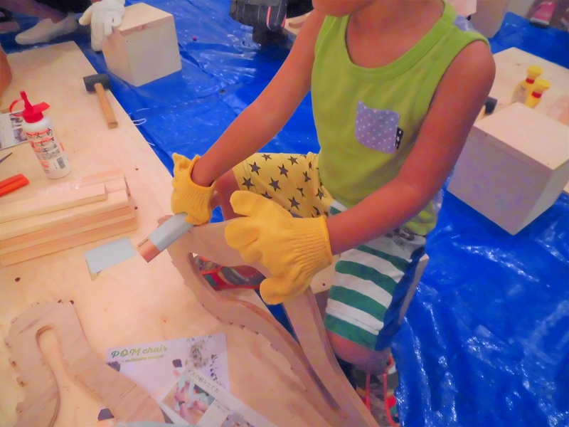 こちらは釘を使わず、ボンドとハンマーのみで作ることのできる椅子の製作体験。