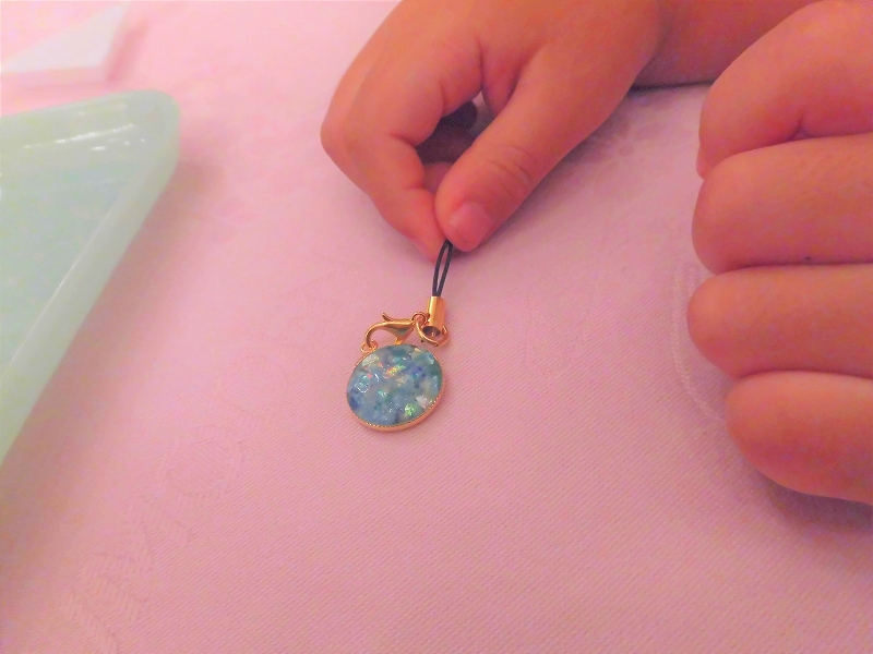 息子はストラップ、ママはイヤリングをブルーのお揃いで作ります!