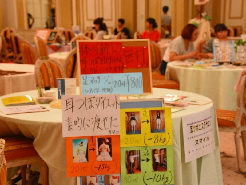 占いや耳つぼダイエット、マッサージのブースもありました。