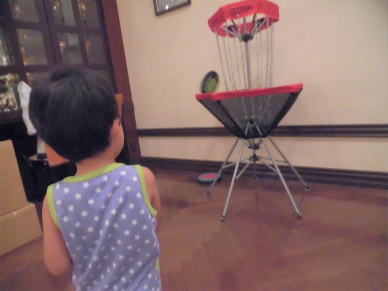 ディスクゴルフ!!上手にできるとお菓子がもらえます。