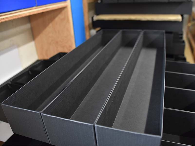 貼箱及びダンボール製品を中心に梱包用品を幅広く扱い、本社内には貼箱部門とダンボール製品の生産設備を揃え、お客様のニーズに対応します。また、包装資材に関する豊富な知識によって、お客様の希望に答えるだけでなく、製品をより一層高める、価値ある包装資材のデザインを提案し、安定的に製品をお届けしています。