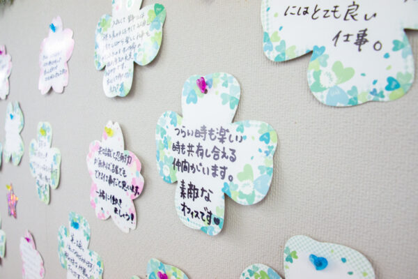 研修やチーム制度等、サポート体制へは力を入れています。いただいた意見を素直に聞き入れることができる明るい方と一緒に働きたいです。