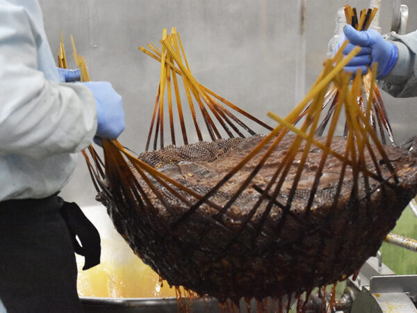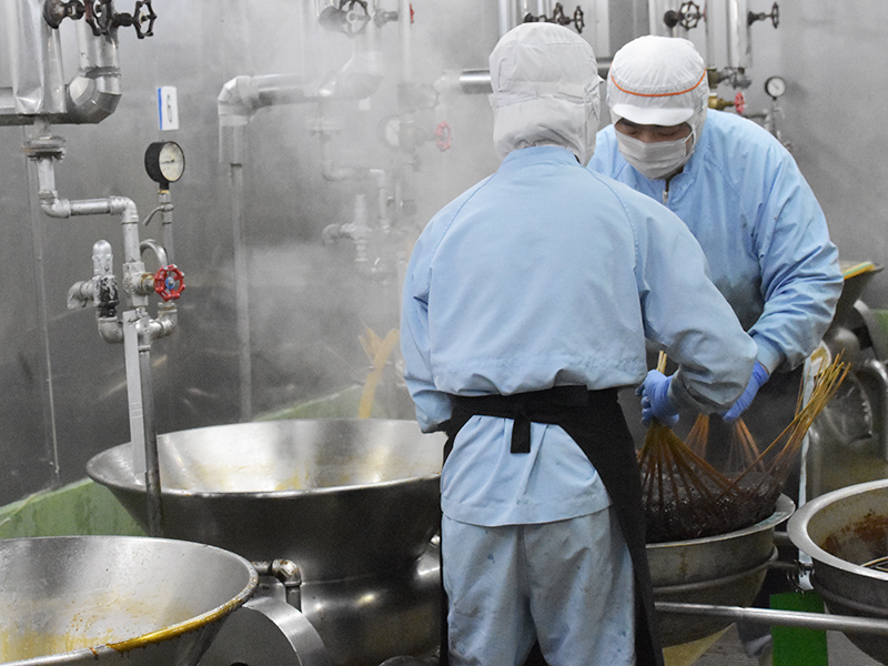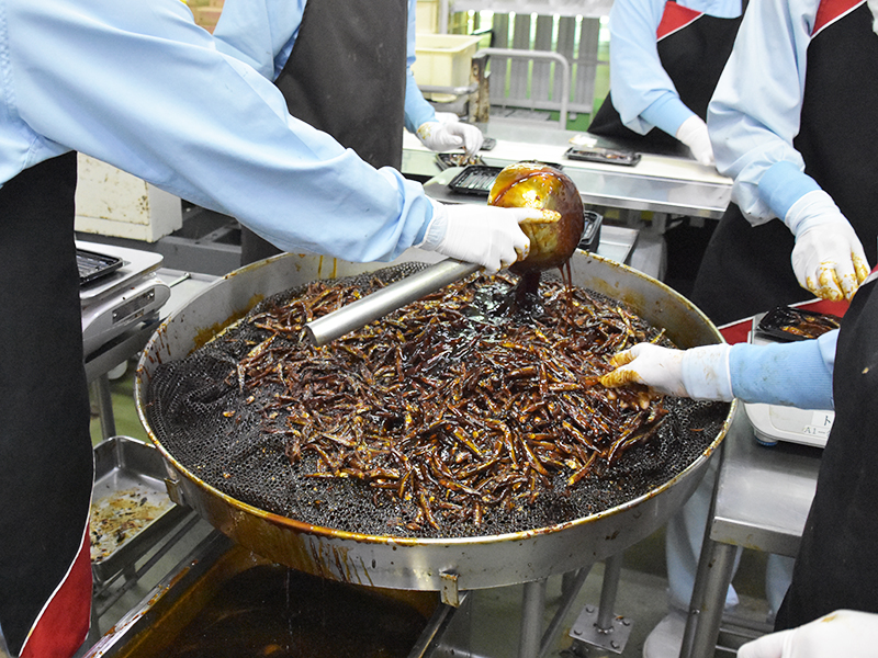 一般的な乾燥原料を使用したつくだ煮は1日で出来上がりますが、平松食品では生原料を多く使用し3日間じっくり時間をかけて製造しています。