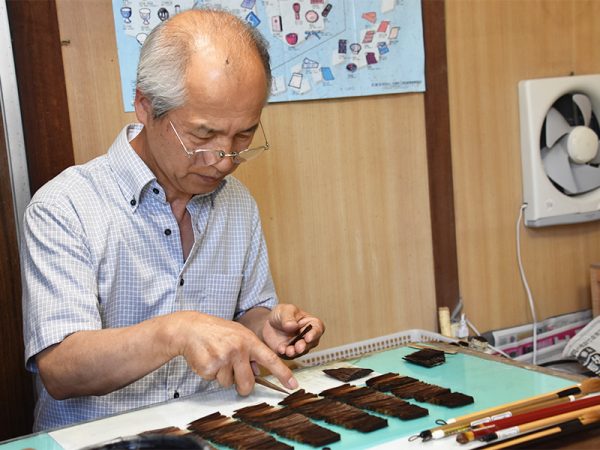 この道50年の川合毛筆の川合は、伝統工芸士として認定を受けた豊橋筆職人の一人です。江戸時代から続く豊橋筆作り独自の技法を受け継ぎ、書道家をはじめとする多くの方々に愛される豊橋筆を作り続けています。