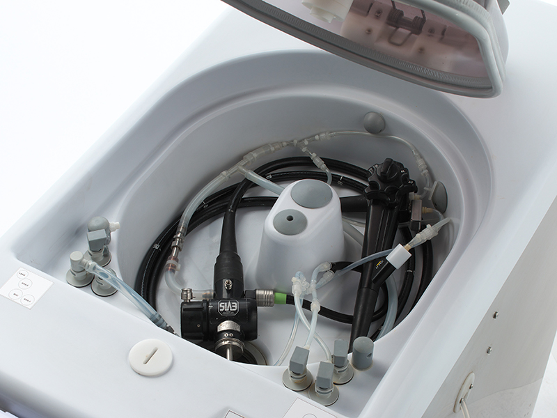 最新の開発品である「内視鏡自己洗浄機能付き全自動洗浄機」は、電解水を使用する内視鏡洗浄装置としては世界で初めて、2017年9月に医療機器分野の品質管理国際基準ISO13485に認定されました。