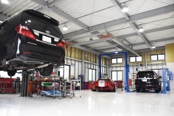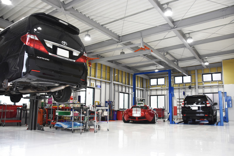 ここでDESIMA JAPANの展示はもちろん、自動車の整備や車検などクルマに関わる総合的なサービスも積極的に行っています。新社屋では、これまでの自動車整備場では見ないような、綺麗な工場を追求し、スタッフ一人ひとりがお客さまといつコミュニケーションしても、高いパフォーマンスが保てるよう作業着など細部にまでこだわった接客を実現しています。また、これまで自動車整備の内容がお客さまから見えにくかったことにも配慮して、作業工程を写真に残し、最後にレポートでしっかりと報告するなど、作業の見える化も徹底しております。