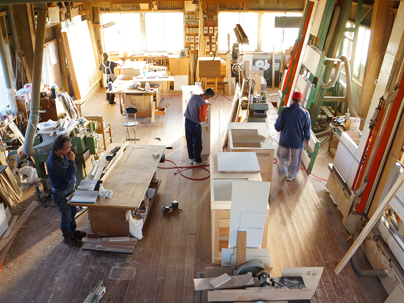 ライン作業ではなく、木材の採寸、カット、組み立て、などの工程をすべて自分たちで行っていきます。