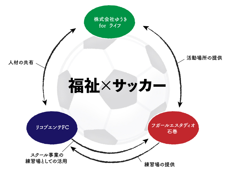 そこで、「福祉」と「サッカー」で人材を共有する仕組みを作りました。