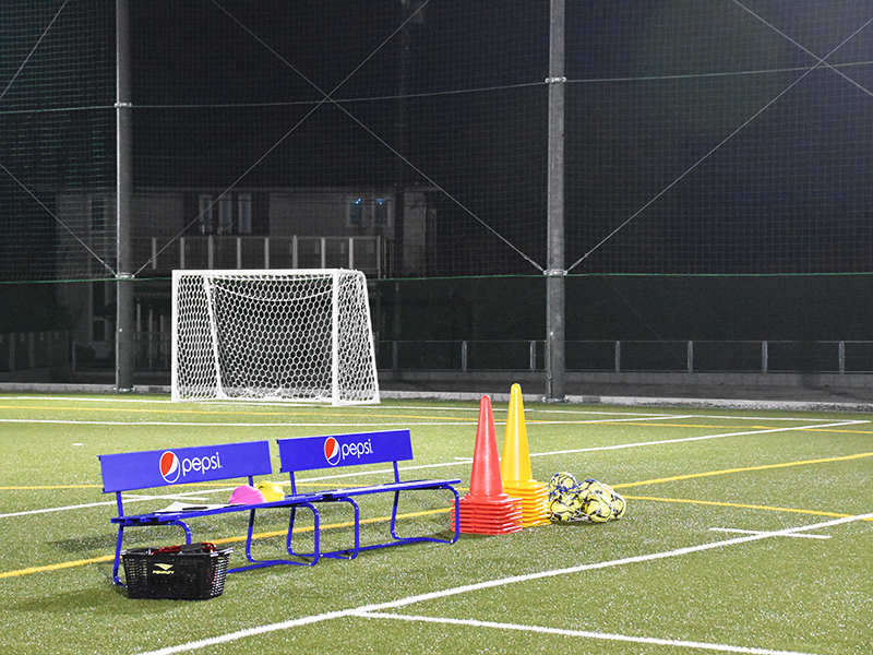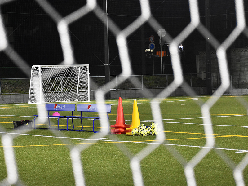 ネット越しから中を覗いてみると、綺麗な人工芝が、まず目に飛び込んでくる。