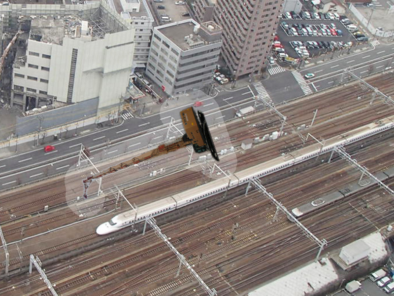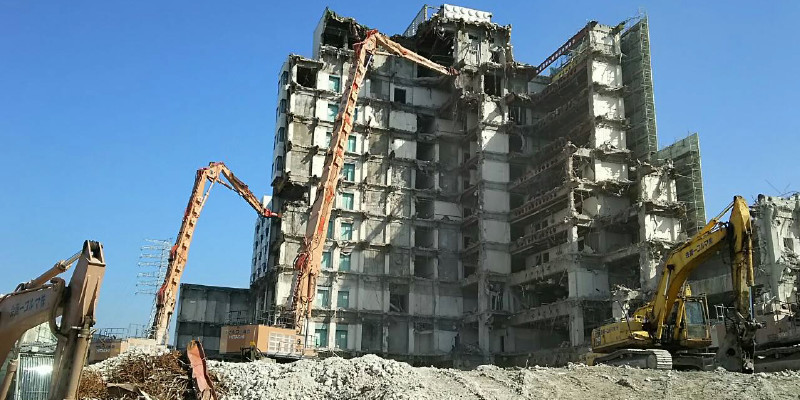 超高層部から低層部の解体にまでこれ一台で対応可能な解体専用機。