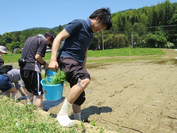 思っていたより田んぼの土は柔らかく、足が沈んでいく。
