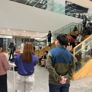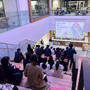 2024年11月18日(月)、本プロジェクトの集大成として、各チームによるムービーのお披露目と、企業紹介のプレゼン発表会を、まちなか図書館にて開催しました。