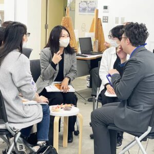 この講座で初めて出会った人とチームを組むことになった学生がほとんどの中、それぞれの過去の経験や得意なことからしっかりと役割分担をして、チームで協力し合って取材準備を進めることができました。