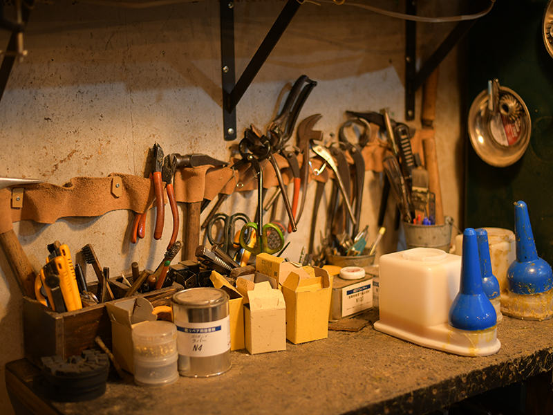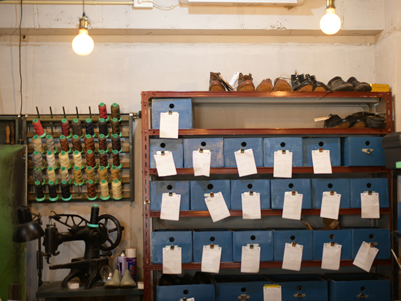 店には数々の専用工具や、100年以上前のビンテージミシンなどがあり、ロマン溢れる印象的な靴工房であった。