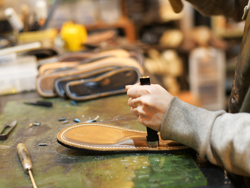 履き心地を大切にすることはもちろんだが、なにより、今までお客さまが履いていた靴の持つ雰囲気を壊さないように、丁寧に修理を行っている。