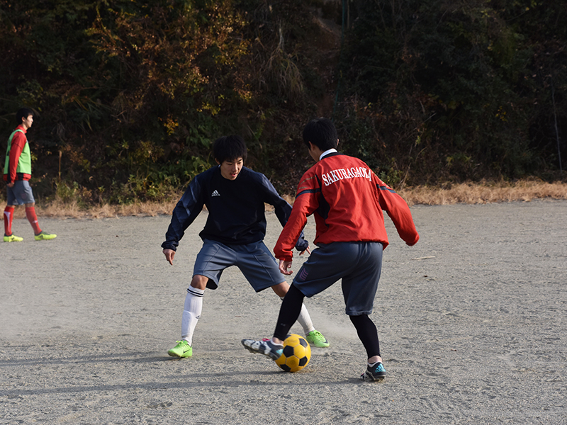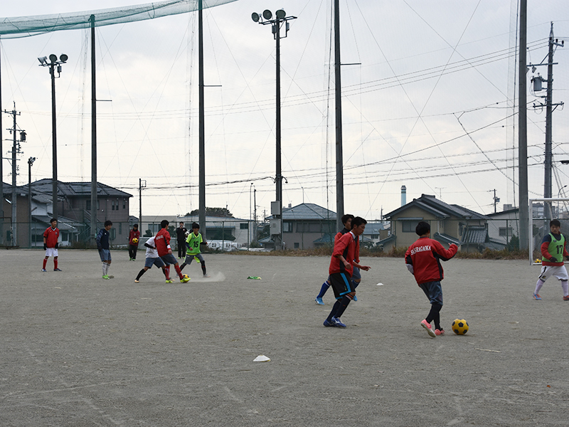 グラウンドは、桜丘中学校の野球部と高校サッカー部が共同で使用しているため、練習場所は通常のサッカーコートの半面にも満たない中、必死にサッカーボールを追いかけ、トレーニングに励む姿があった。