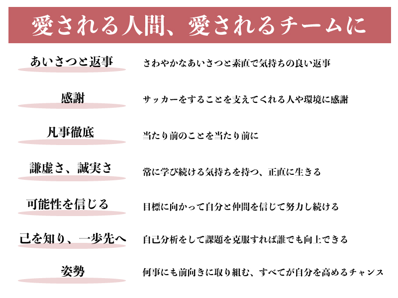 以上のことを選手全員で唱えてから練習や試合に臨んでいるそうだ。