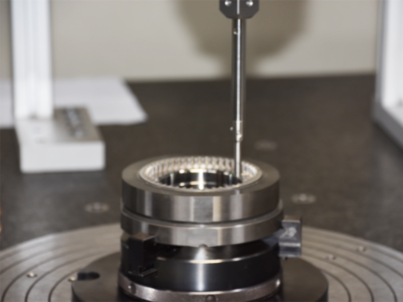 ルビーのついた測定指針を使って、金型の測定を行います。