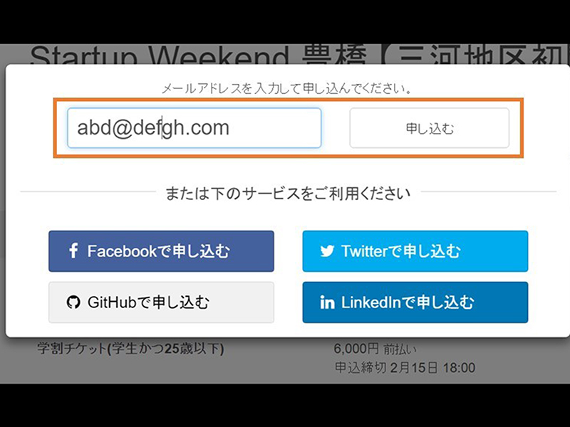 私はメールアドレスを入力して申し込みました。
