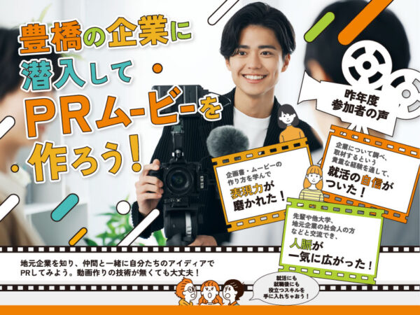 豊橋の企業に潜入してPRムービーを作ろう! 豊橋市内の大学・短大・専門学校に通う学生、豊橋市内在住の大学生・短大生・専門学生の皆さん!豊橋の企業に潜入してPRムービーを作りませんか? 地元企業を知り、仲間と一緒に自分たち…