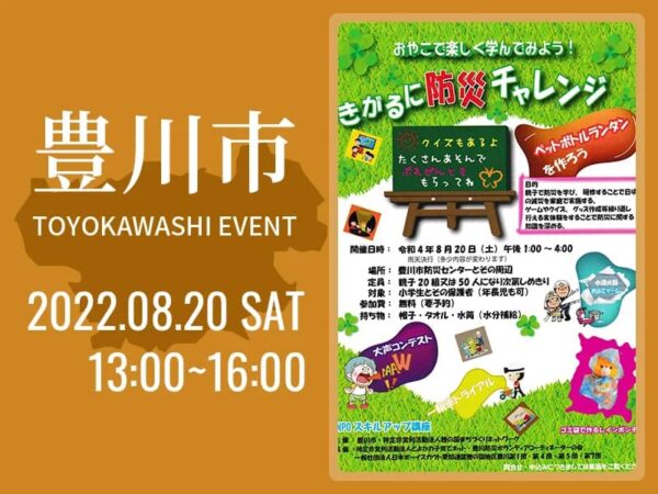 夏休みにおやこで楽しく防災を学べるイベントを開催します。 ペットボトルランタン作り、水消火器的あてゲーム、ゴミ袋で作るレインポンチョ作りなどがあります。 <目的> 親子で防災を学び、研修することで日頃の減災を家庭で実施す…