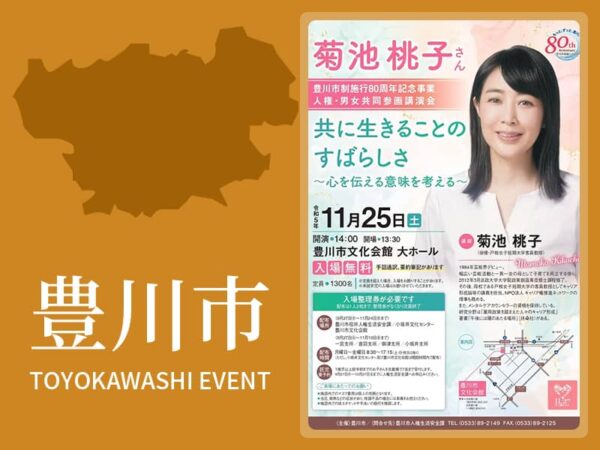 豊川市では、人権尊重思想の普及・高揚と男女共同参画への理解を深めるため、人権・男女共同参画講演会を開催します。 なお、この講演会は、あいち県民の日関連事業に位置付けています。 あいち県民の日・あいち県民ウィーク特設サイト…