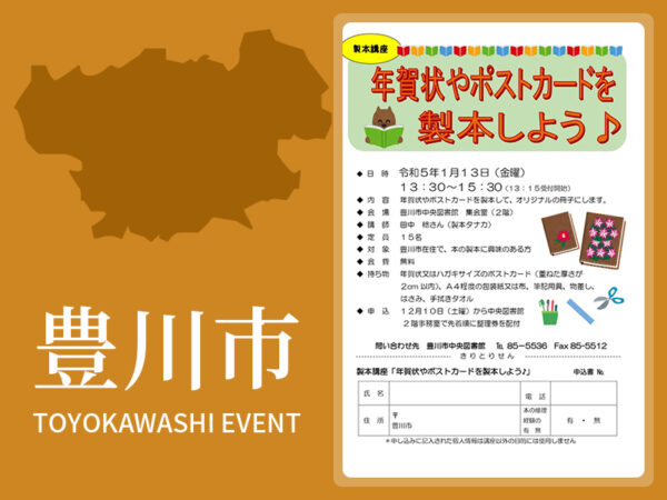 中央図書館では、製本講座「年賀状やポストカードを製本しよう♪」を1月13日(金)を開催します。