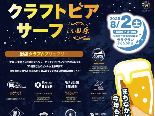 愛知・三重発13店舗のブルワリーから30種類以上のビールが集まる! お子さま一緒に楽しめる「子ども縁日」も同時開催、さまざまなクラフトビールや田原の美味しいグルメを楽しもう♪ ▽詳しくはこちら・イベントチラ…