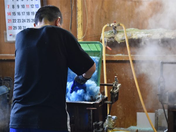 「固める」ということに特化した会社が豊橋にあると聞き、教えていただいた場所を目指す。 大脇町の道を走っていると大きな病院の近くに、緑に囲まれた工場が見えてきた。 工場の2階にある事務所を訪ねると、中から一人…
