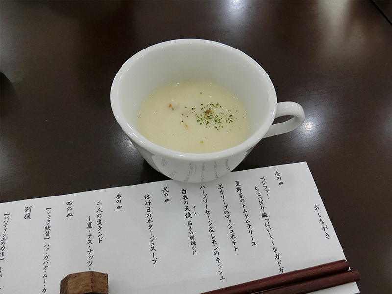 弐の皿は、「休肝日のポタージュスープ」が出てきた。
