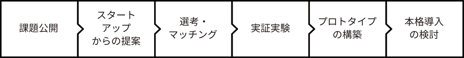 審査により選ばれたスタートアップと市担当職員が数ヶ月間協働して、市民によるテスト利用や市役所業務の中での試行導入・実証実験などを行い、本格導入を検討します。