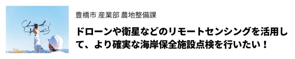 現在、目視等で行っている点検業務をドローンや衛星などのリモートセンシングを活用することで業務が効率化できることにも期待しています。